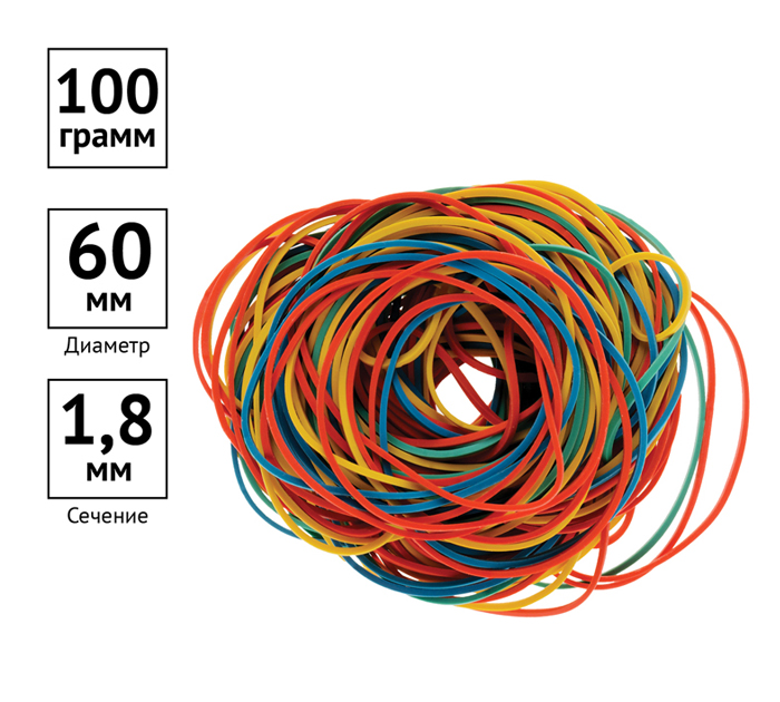 Банковская резинка OfficeSpace для денег и бумаг изготовлена из натурального каучука. Размер сечения – 1,8х1,8 мм, диаметр – 60 мм. Резинки упакованы в пакет по 100 граммов. Изделие может применяться в быту, в торговле, в аграрной сфере, в прикладном творчестве и т.д.