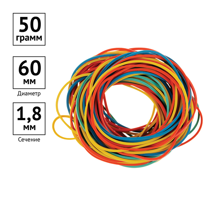 Банковская резинка OfficeSpace для денег и бумаг изготовлена из натурального каучука. Размер сечения – 1,8х1,8 мм, диаметр – 60 мм. Резинки упакованы в пакет по 50 граммов. Изделие может применяться в быту, в торговле, в аграрной сфере, в прикладном творчестве и т.д. Тип: банковская резинка. Диаметр: 60 мм. Цвет: ассорти. Вес: 50 гр. Страна-производитель - КИТАЙ.