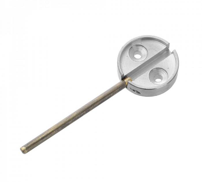 Опечатывающие устройства с откидным штоком получили в последнее время активное распространение благодаря своей высокой эффективности, прочности и долговечности. Опечатывающие устройства с откидным штоком представляют собой высокоэффективные средства для защиты и контроля над доступом на подконтрольный объект. С их помощью выполняется опечатывание шкафов, сейфов и комнат. Данные устройства для опечатывания изготавливаются на основе латуни или алюминия, отличаются высокой прочностью и простотой эксплуатации. Опечатывающие устройства с откидным штоком используются в комплексе с пластилином и металлической печатью. Как правило, при помощи данного устройства опечатываются дверные конструкции, которые открываются наружу. Материал алюминий. Высота 9мм. Диаметр внешний 29.5мм. Диаметр внутренний 26мм. Отверстия 2шт. Винт М4. Ширина паза 4.5мм. Вылет флажка 44мм. Цвет серебристый.
