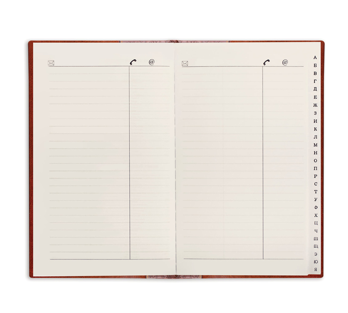 Телефонная книжка BRAUBERG «Cayman» с вырубным алфавитом выполнена в строгом деловом стиле. Содержит 96 листов офсетной бумаги в клетку плотностью 70 г/м2. Обложка выполнена из экокожи, надежно защищающего листы от повреждения. Формат А5 (136х205 мм). Выполнена в коричневом цвете в сочетании с темно-коричневым.