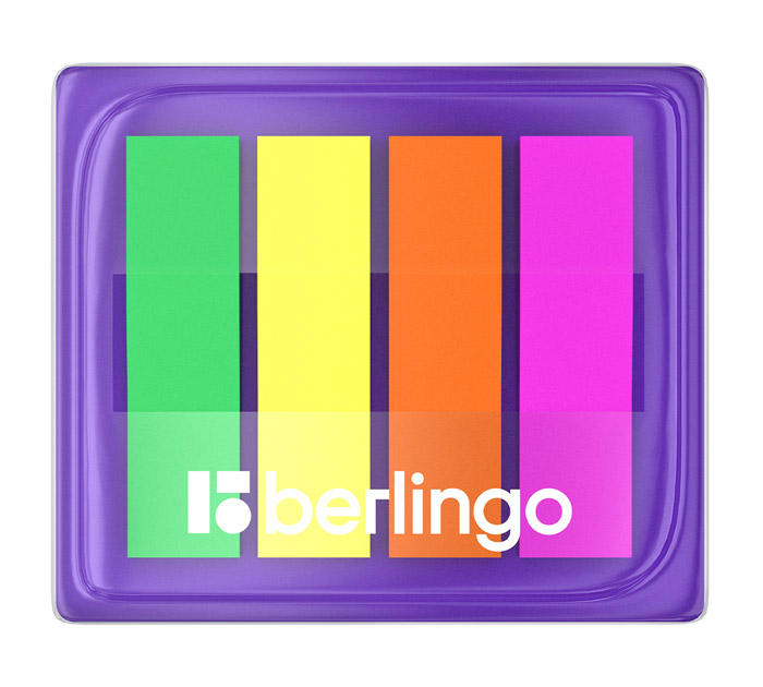 - Закладки клейкие Berlingo 45х12мм, 4 неоновых цвета, в пластиковом боксе, 80л