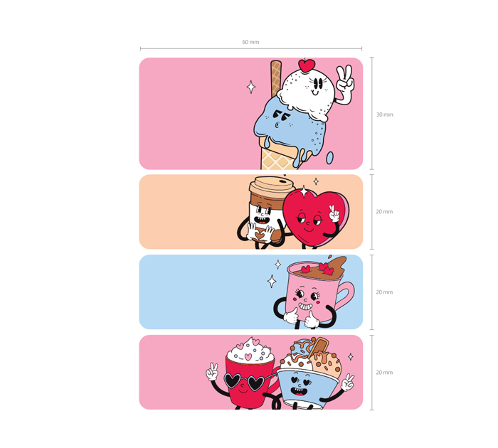Клейкие закладки бумажные ErichKrause представлены в коллекции Yummy. Клейкие закладки удобны для выделения страниц и записи коротких сообщений, а также подчеркнут Вашу индивидуальность за счет рисунка коллекции Yummy. Клеевой слой на водной основе обеспечивает надежную фиксацию и возможность многократного переклеивания, не оставляя следов. Закладки изготовлены из высококачественной бумаги плотностью 75 г/м2. Клейкие закладки представлены в размерах - 60х20 мм и 60х30 мм. В упаковке 80 листов. Коллекция: Yummy. Материал: бумага. Размер, мм: 60х20, 60х30. Количество листов: 80. Цвет: ассорти. Возможность переклеивания: да. Плотность бумаги, г/м2: 75. Пол: не имеет значения. Страна производства: Китай.
