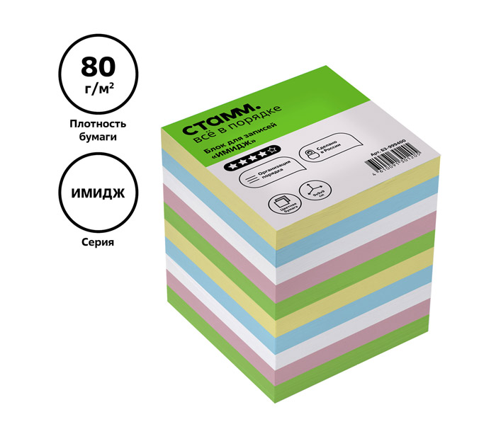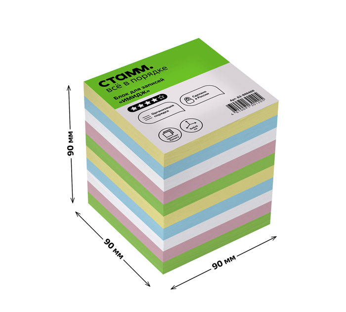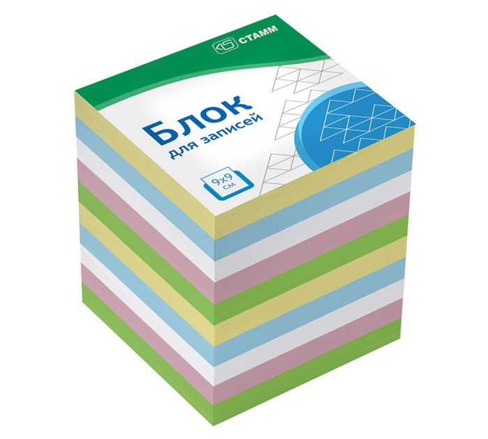 - Блок бумажный для записи Стамм «Имидж» непроклеенный, 90х90х90мм, цветной