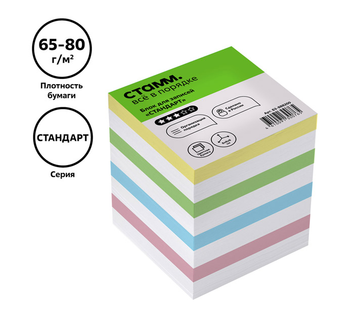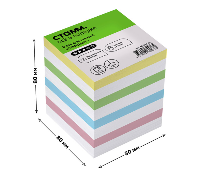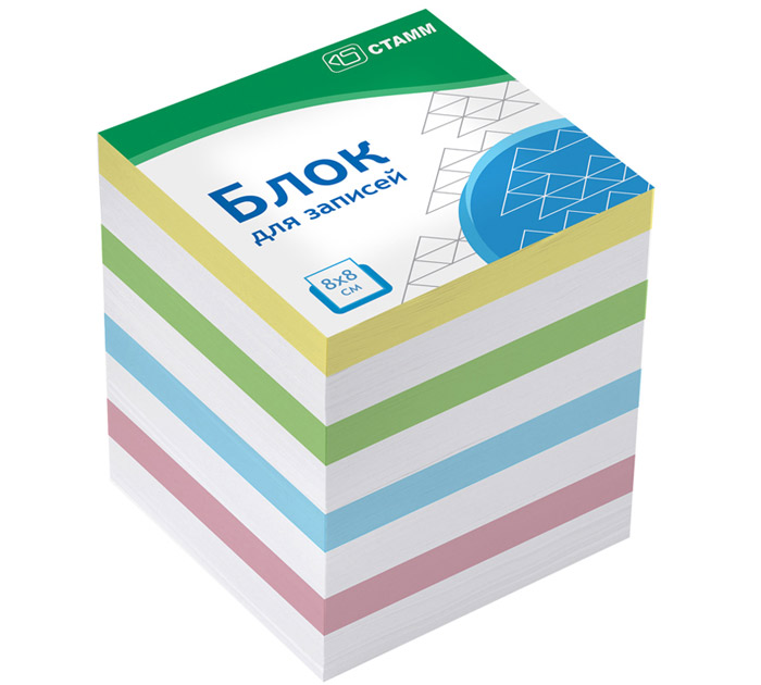 Блок бумажный для записи Стамм «Стандарт» непроклеенный, 80х80х80мм, цветной