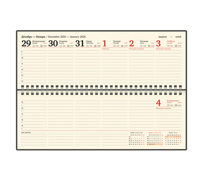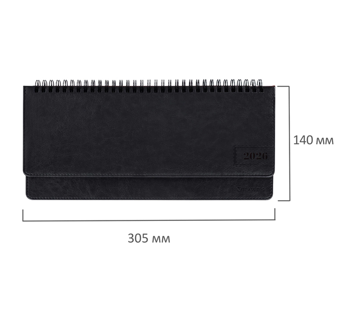 Планинг датированный Brauberg «Imperial» 305х140мм, черный, кожзам, на спирали, 120стр, 2026 год