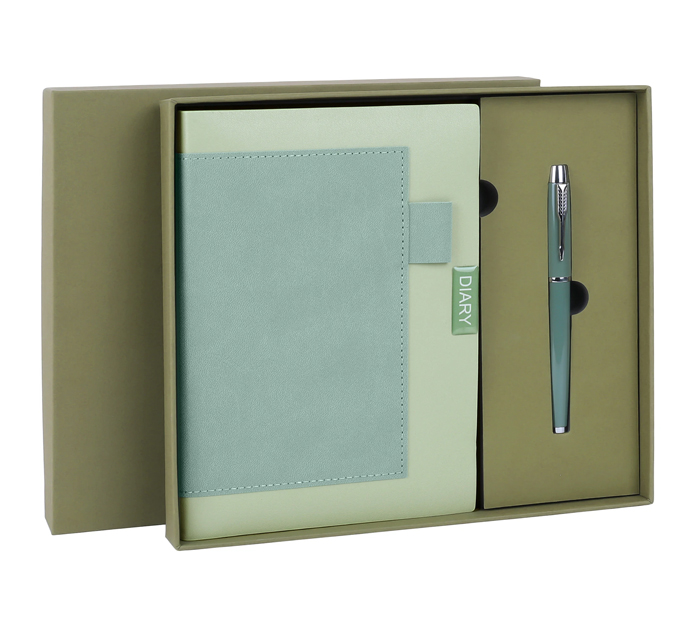 Подарочный набор ежедневник с ручкой Brauberg «Style» ежедневник недатированный, А5, зеленый, кожзам, 320стр