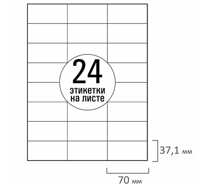 Бумага самоклеящаяся Tanex A4, 24 этикетки, 70х37.1мм, 70г/м2, 100л