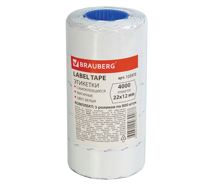 Этикет-лента Brauberg 22х12мм, однострочная, овальная, белая, 800шт