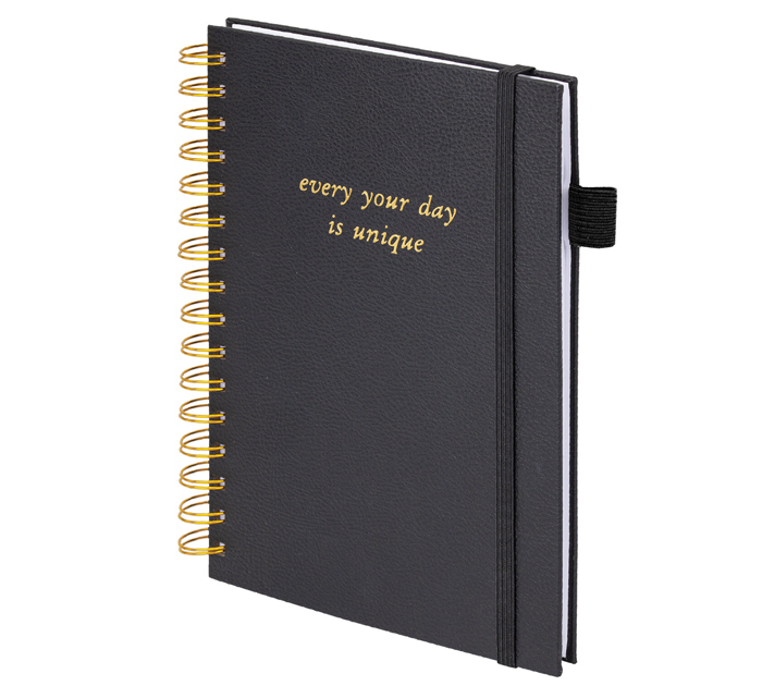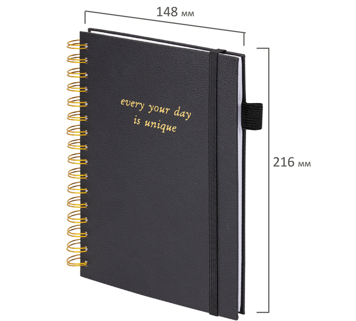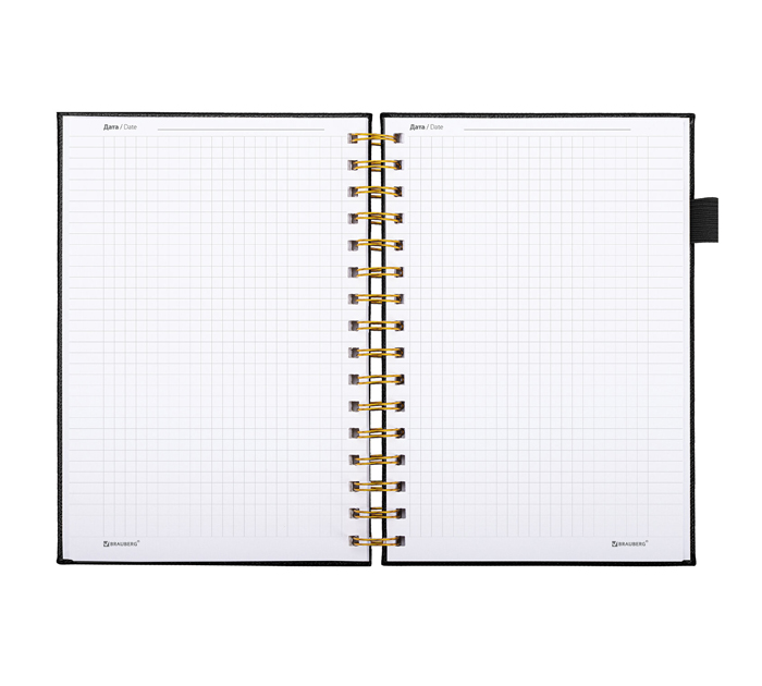 Бизнес-тетрадь А5 80л, клетка, на спирали, под кожу, на резинке, черная, Brauberg «Calipso»