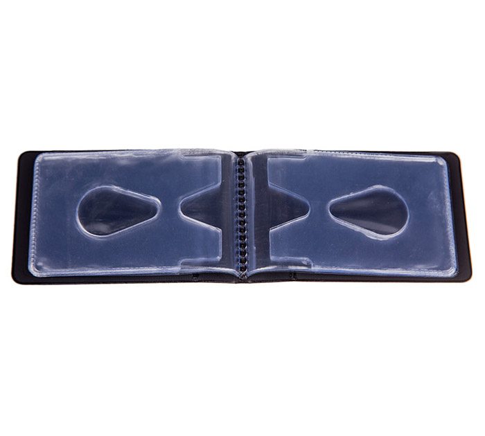 Кредитница однорядная. Материал - вспененный ПВХ. Материал внутреннего блока - ПВХ. Тип скрепления - термосварка. Цвет - черный. Количество карт - 16. Упаковка - пакет с европодвесом