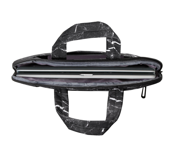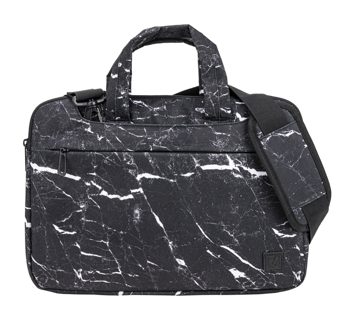 Стильный, компактный и функциональный аксессуар для активной и эффективной работы, отличное решение для переноски ноутбука, планшета, документов формата А4, презентаций и других необходимых вещей. Качественные материалы надежно защитят содержимое. Деловая сумка для ноутбука с диагональю экрана до 13-14« может использоваться как ежедневно, так и для поездок в командировки или путешествия. Стенки и дно уплотнены слоем специальной амортизирующей пены, что позволяет защитить ноутбук или документы от механических повреждений. Необходимые для электронного устройства аксессуары, такие как блок питания, мышка и прочее, можно разместить отдельно, во внешних карманах, что предохранит ноутбук от царапин. Передний карман с органайзером, передний и задний карманы на липучке предусмотрены для документов, портмоне, пишущих принадлежностей, телефона и прочего. Трендовый черно-белый принт »Мрамор« прекрасно сочетается с разными стилями в одежде. Деловая сумка изготовлена из современного, износостойкого и качественного материала - полиэстера, обладающего водоотталкивающими свойствами. Полиэстер обладает отличной устойчивостью цвета к солнечным лучам и легкостью в уходе. Загрязнения легко удаляются с помощью мыла и мягкой влажной губки. Подкладка выполнена из мягкого, приятного на ощупь велюрового материала. Регулируемый съемный плечевой ремень с мягкой накладкой и с прочной металлической фурнитурой обеспечивает удобную эксплуатацию. Удобные прочные ручки для комфортной переноски. Сумку легко открывать и закрывать одной рукой с любой стороны - основное отделение имеет долговечную реверсивную молнию с удобными металлическими бегунками. Упакована в плотный ПЭТ пакет, который сохранит качество и товарный вид при хранении и транспортировке.