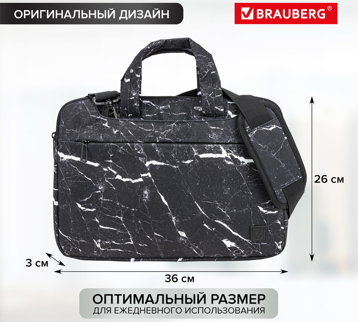 Сумка-портфель Brauberg «Marble» 360х260х30мм, 13-14«, черная с белым