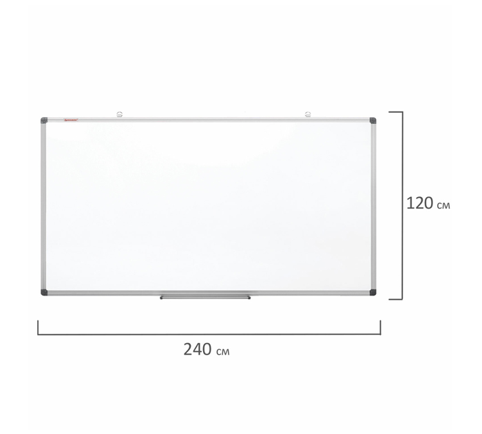 Магнитно-маркерная доска Brauberg «Extra» повсеместно применяется в разнообразных образовательных учреждениях, в офисах, залах для обучения, презентаций, ежедневных записей и семинаров. Лаковое покрытие предназначено для письма специальными маркерами для белой доски, а металлическая поверхность позволяет размещать информацию при помощи магнитов. Доска размером 120х240 см имеет укрепленные пластиковые уголки, которые позволяют скрыть места крепления к стене. Профиль придает изделию дополнительную прочность и современный стильный внешний вид. Элементы крепления входят в комплект. Для защиты рабочей поверхности доски на нее нанесена защитная пленка. Перед началом работы – удалить защитную пленку. При должном уходе за рабочей поверхностью доски при помощи чистящей жидкости-спрея и стирателей Brauberg поверхность магнитно-маркерной доски прослужит более 10 лет.
