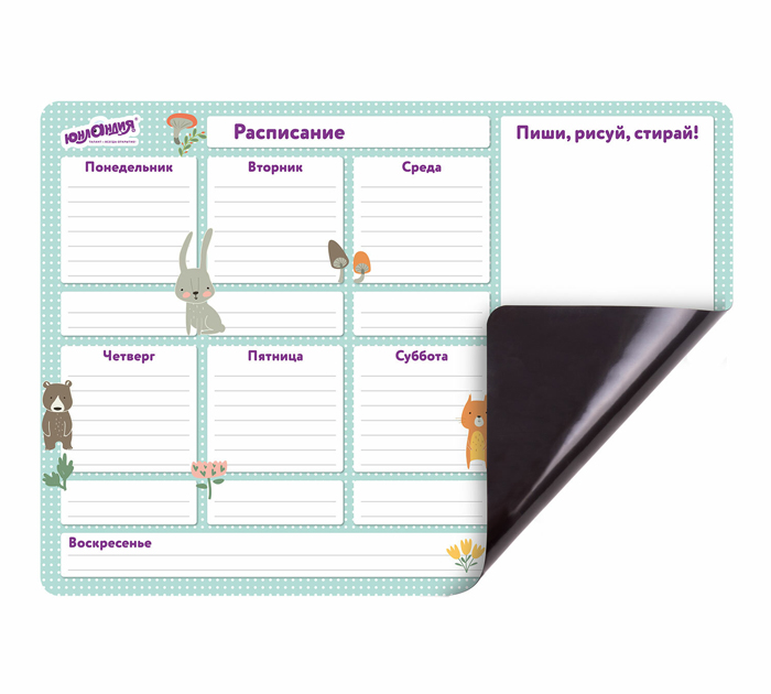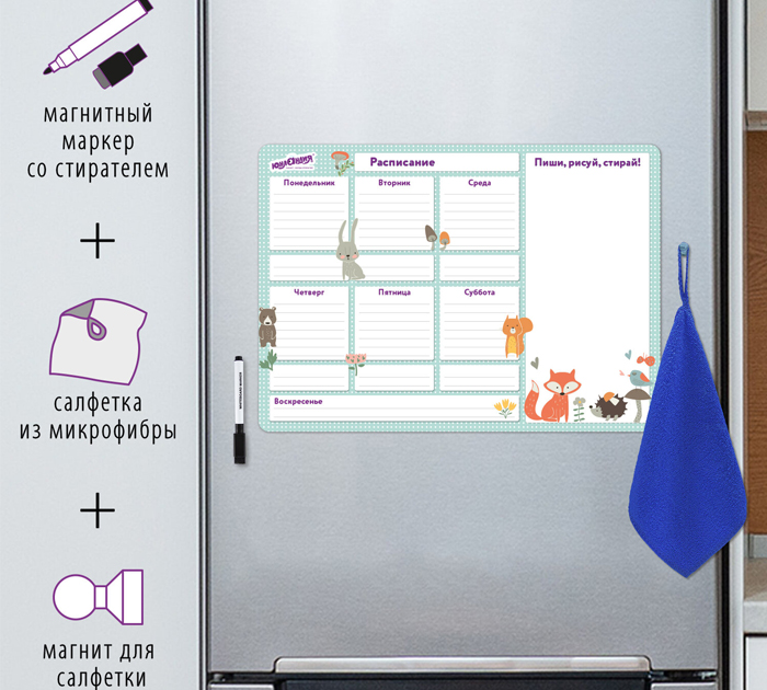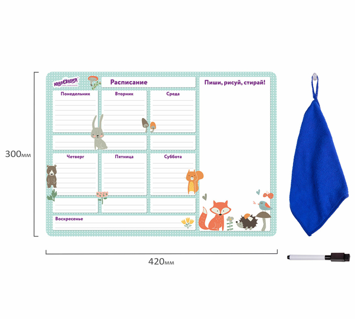 Планинг магнитный Юнландия на холодильник, на неделю, с маркером и салфеткой, 42х30см