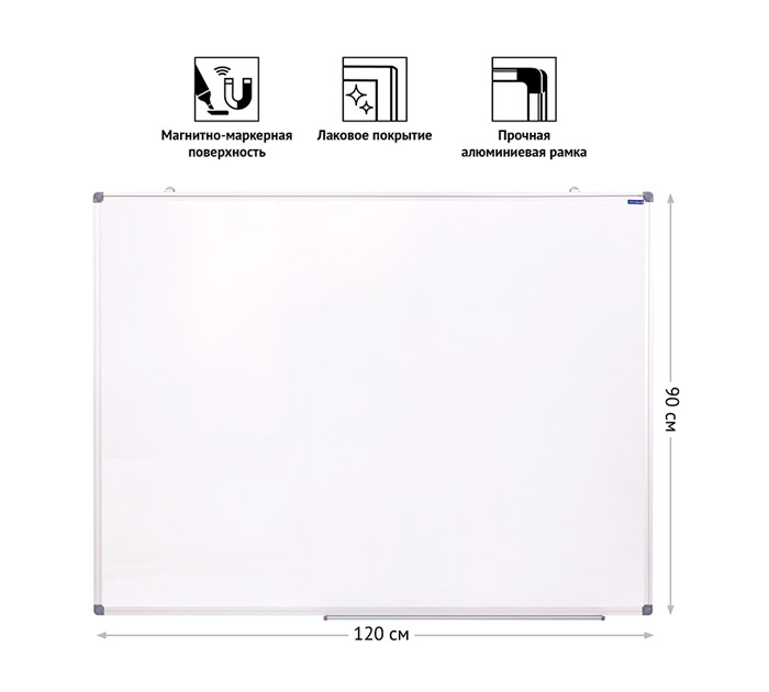 Магнитно-маркерная доска OfficeSpace идеально подойдёт для проведения тренингов, совещаний и презентаций. Размер: 90х120 см. Вес нетто составляет 3,8 кг. Белое лаковое покрытие предназначено для письма специальными маркерами. Металлическая поверхность позволяет размещать объявления при помощи магнитов. Алюминиевая рамка с укреплёнными пластиковыми уголками гарантирует прочность конструкции и длительный срок службы. Предусмотрена возможность как горизонтального, так и вертикального монтажа доски на поверхности. Комплектация: полочка для аксессуаров, крепежные элементы, инструкция. Страна-производитель - КИТАЙ.