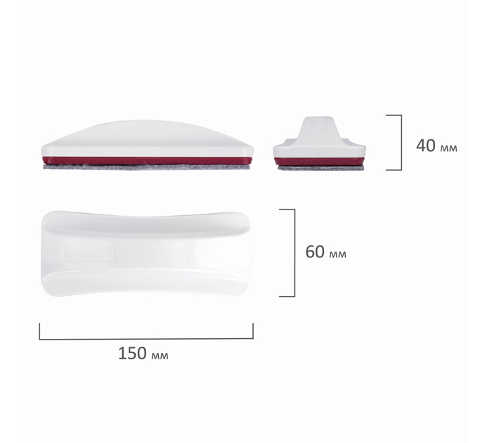 Стиратель магнитный BRAUBERG «Extra» предназначен для сухого стирания надписей, сделанных маркером для белых досок. Выполнен из прочного пластика белого цвета, имеет стильный эргономичный дизайн. Стиратель прямоугольной формы со встроенным магнитом отлично крепится к любой магнитно-маркерной доске, что позволяет расположить его в любом месте рабочей поверхности доски. Сменные двусторонние вкладыши из фетра обладают мягкой износостойкой поверхностью и крепятся к корпусу стирателя на липучки. Размер - 65х150 мм. Упакован в картонню упаковку. Страна-производитель - Китай