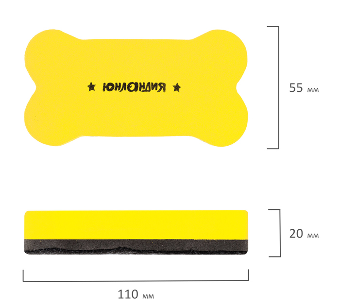Губка для доски Юнландия «Косточка» 110х55мм, магнитная, 3шт