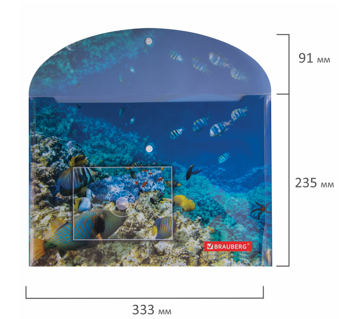Папка-конверт Brauberg «Sea world» А4, на кнопке, с рисунком, 160мкм