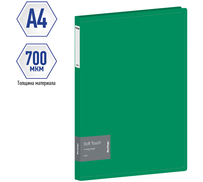 Папка на 4 кольца Berlingo «Soft Touch» А4, ширина корешка - 24мм, D-кольца, зеленая, 700мкм