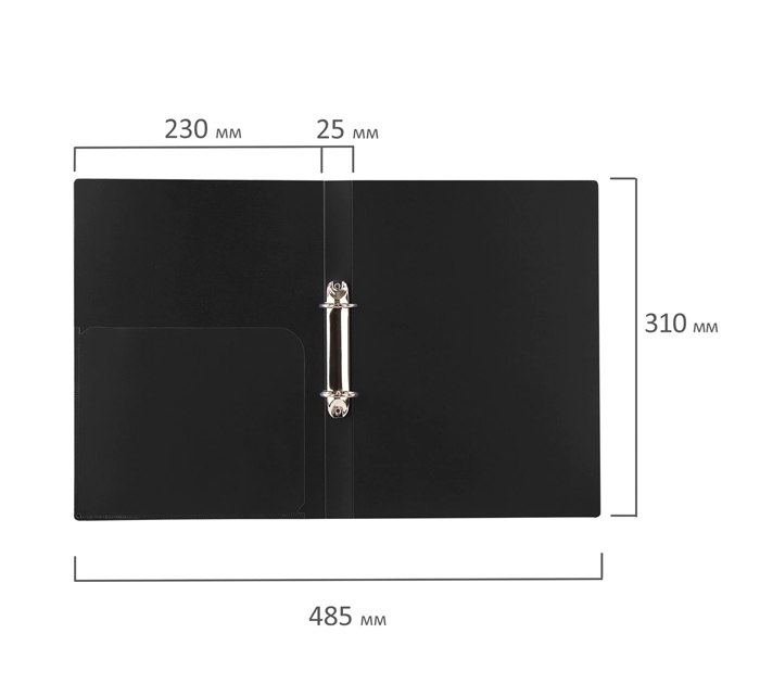 Папка на 2 кольца Brauberg «Стандарт» А4, ширина корешка - 25мм, черная, 800мкм