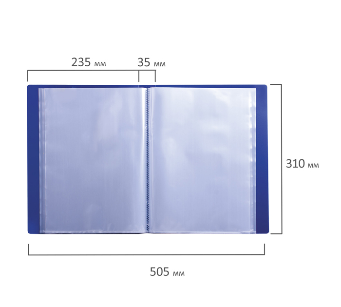 Папка с файлами Brauberg «Стандарт» А4, 60 карманов, пластиковая, синяя, 800мкм