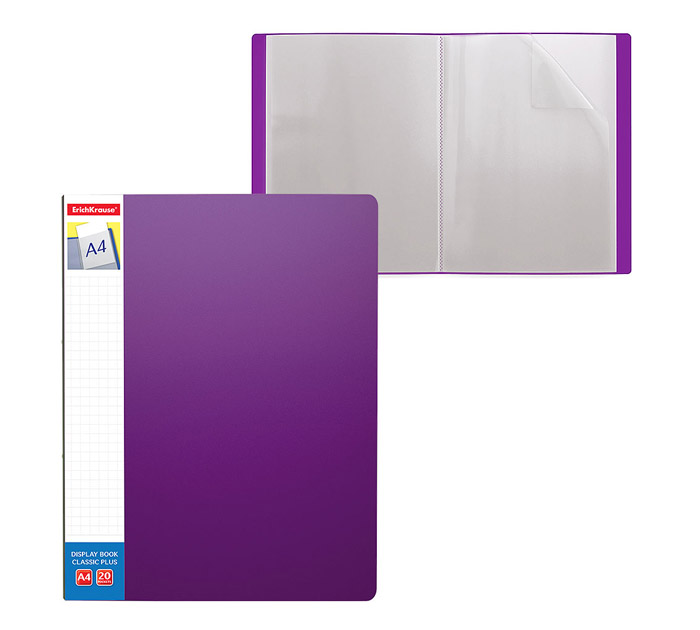 Папка с файлами Erich Krause А4, 20 карманов, пластиковая, фиолетовая, 600мкм