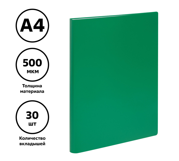 Папка с файлами 30 карманов А4 пласт. зел. 500мкм 17мм Стамм