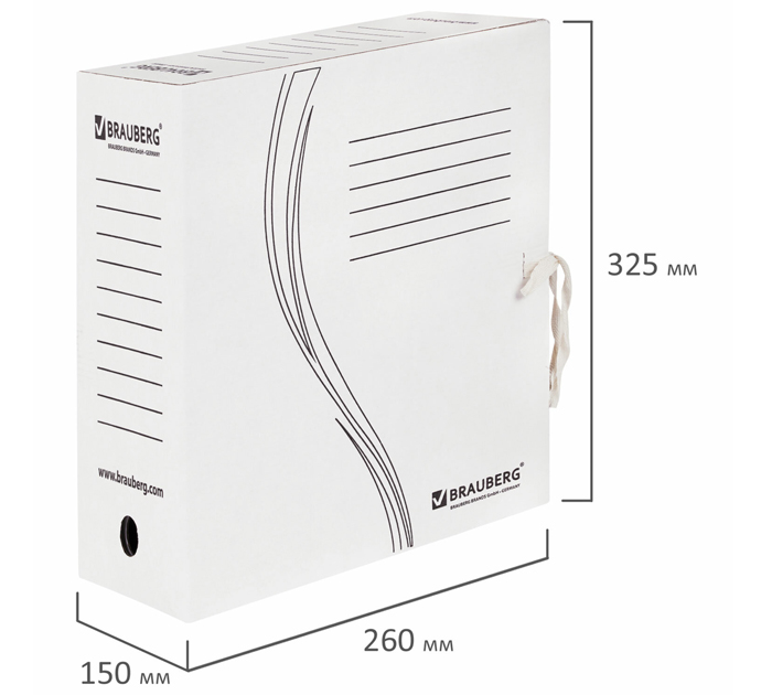 Папка архивная с завязками Brauberg А4, белая, ширина корешка - 150мм