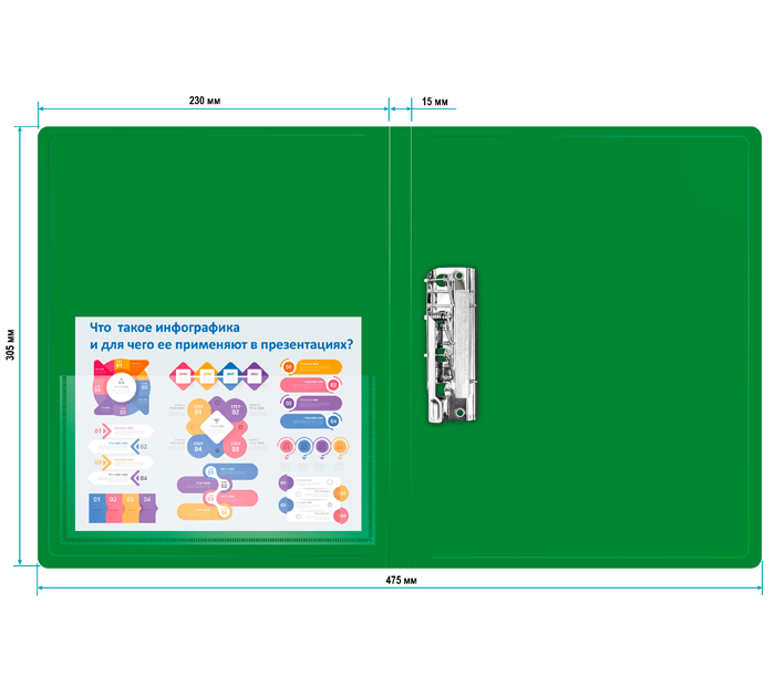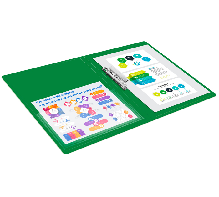 Папка с боковым зажимом Бюрократ А4, пластиковая, зеленая, 700мкм