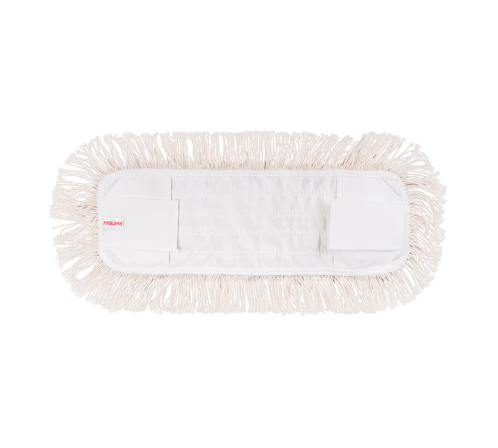 Насадка МОП из хлопка Laima предназначена для проведения влажной и сухой уборки помещения. Моп имеет форму плоского прямоугольника, такая форма и чистящая поверхность из ворса длиной 4.5 см позволяет удобно собрать грязь по углам и захватить большую площадь убираемой поверхности, что в свою очередь уменьшает временные затраты на уборку больших площадей. Устойчива к износу, что обеспечивает долгий срок службы уборочного инструмента. Выполнена из хлопка и полиэстера, имеет размер 42х10 см. Максимальный объем впитывания - 500 мл. Используется в комплекте со шваброй, крепится к держателю с помощью карманов.