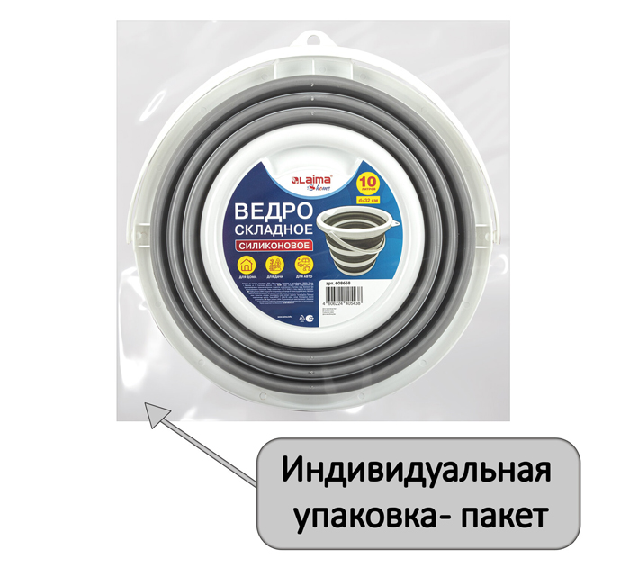 Ведро складное LAIMA Home объемом 10 литров. В сложенном виде занимает очень мало места – отлично подойдет для автомобиля, для небольших квартир и для дачных участков. Простое решение для оптимизации жилого пространства! Ведро легко складывается и раскладывается, очень устойчивое. Имеет носик для удобного слива воды и отверстие для хранения в подвешенном состоянии. Может использоваться во время уборки, как емкость для хранения игрушек, грязного белья и разных хозяйственных мелочей, для сбора ягод и грибов. Высота ведра в сложенном виде – 5 см, в разложенном – 24,5 см. Тип товара: Ведро. Объем: 10 л. Цвет: белый/серый. Высота: 24.5 см. Ширина : 32 см. Глубина: 32 см. Диаметр: 32 см. Материал: полипропилен/термопластичная резина. Серия: Складная емкость. Бренд - LAIMA. Производитель - Китай.