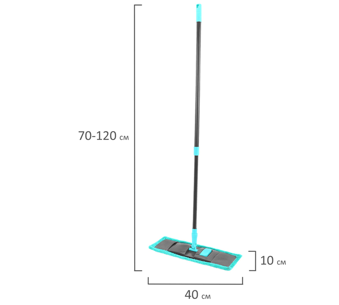 Швабра ЛЮБАША предназначена для влажной уборки в помещениях. Подходит для мытья вертикальных и горизонтальных поверхностей, любых типов напольных покрытий. Телескопическая ручка швабры обеспечивает удобство в использовании. Насадка из микрофибры с высокой впитывающей способностью эффективно собирает грязь и мусор, не оставляя разводов. Подвижное соединение ручки и держателя позволяет достигать сложных для уборки участков. Крепление насадки – карманы. Крепление черенка осуществляется при помощи еврорезьбы. Насадка выполнена из микрофибры, держатель – из пластика. Длина телескопической ручки из алюминия – 70-120 см. Длина рабочей части – 40х10 см. Вес – 300 г. Страна-производитель - Китай.