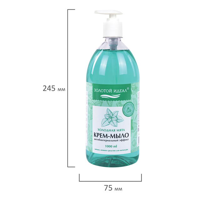 Мыло жидкое Золотой идеал «Холодная мята» крем-мыло, антибактериальный эффект, 1000мл, с дозатором