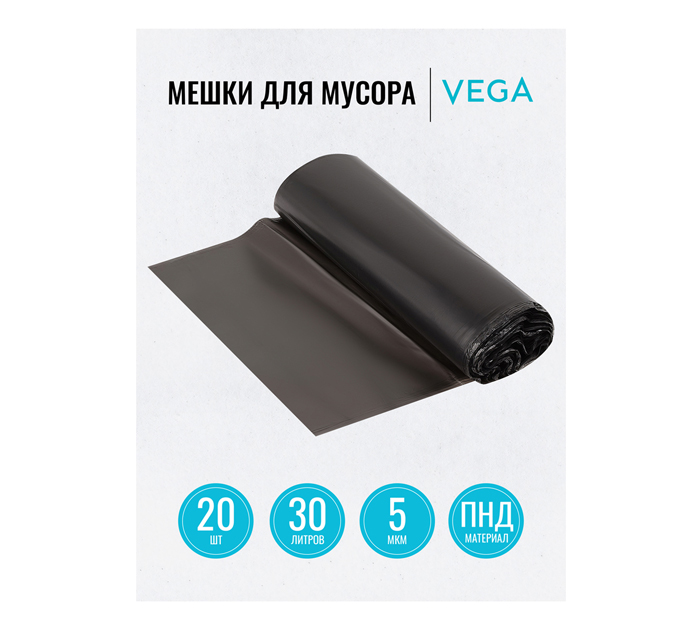 Мешки для мусора Vega 30л, 5мкм, 20шт