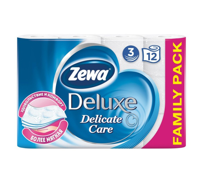 Туалетная бумага Zewa «Deluxe RU» 3-слойная, 12 рулонов, со втулкой