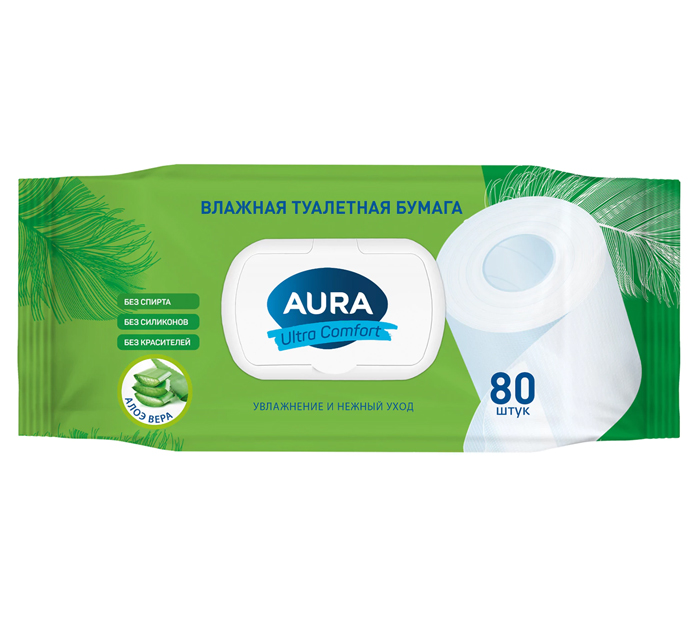 Влажная туалетная бумага AURA дарит ощущение чистоты и свежести, обеспечивает бережный уход. Незаменима в дороге, на природе, дома или на даче. Предназначена для ежедневного использования. Не содержит спирт, красителей и силиконов. В пачке 80 листов. Плотно закрывающийся пластиковый клапан надежно защищает бумагу от высыхания. Варианты отдушки – алоэ или ромашка. Производитель: Россия.