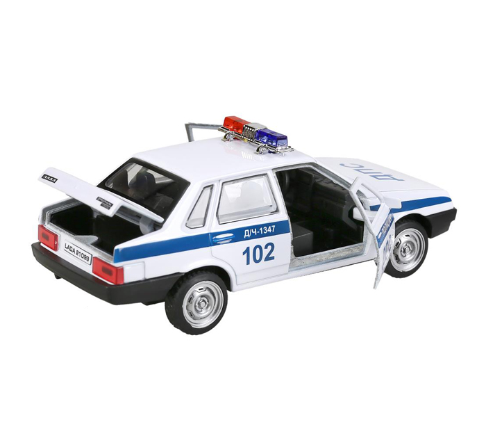 Коллекционная металлическая модель «Lada 21099 «Спутник». Полиция» - прекрасный подарок для маленького автолюбителя: открываются передние двери; открывается багажник; инерционный механизм (поставьте машинку на ровную поверхность, потяните назад, отпустите – и она тут же поедет вперёд). Металлическая модель, выполненная с учётом всех особенностей прототипа, обязательно понравится вашему ребёнку. Благодаря открывающимся дверям и багажнику, которые делают машинку максимально похожей на настоящую, всегда можно заглянуть к ней внутрь, чтобы убедиться - каждая деталь отлично проработана. Реалистичный дизайн данной модели позволит с головой погрузиться в игру, придумывая новые интересные сюжеты. Кроме того, эта игрушка познакомит малыша с видами спецтранспорта и марками автомобилей. Игра с инерционной машинкой ТМ «Технопарк» развивает: координацию движений, внимание, ловкость, фантазию и воображение. Длина модели: 12 см. Размер упаковки: 17,5 х 7,5 х 6,5 см. Материал: пластмасса + металл. Рекомендовано детям от 3-х лет.