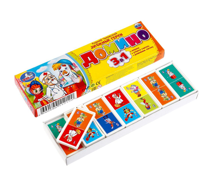 Игра настольная Умные игры «Домино. Любимые герои К.Чуковский» союзмультфильм 3в1, от 3-х лет