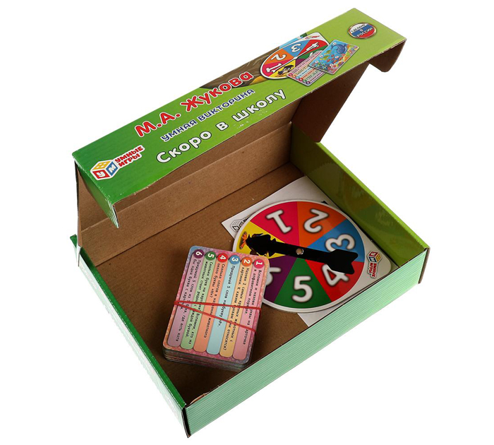 Умная викторина «М. А. Жукова. Скоро в школу» ТМ «Умные игры» - увлекательное обучение в игровом формате по методике раннего развития. Состав игры: 32 карточки с вопросами, рулетка, правила игры. Данная викторина - это обучающая игра, предназначенная как для самостоятельного времяпровождения уже читающих детей, так и для игры с родителями или в компании друзей. Перед началом игры обратите внимание на уровни сложности игры: начальный, базовый и повышенный. Выберите для своего ребёнка наиболее подходящий вариант. Такой подход обеспечит индивидуальный темп освоения материала, его закрепления и скорость получения новых знаний. Обратите внимание, что на каждой карточке по шесть вопросов, и они постепенно усложняются от первого к последнему. Размер упаковки: 240 x 180 x 55 мм. Материал: картон + пластмасса. Рекомендовано детям от 3-х лет.