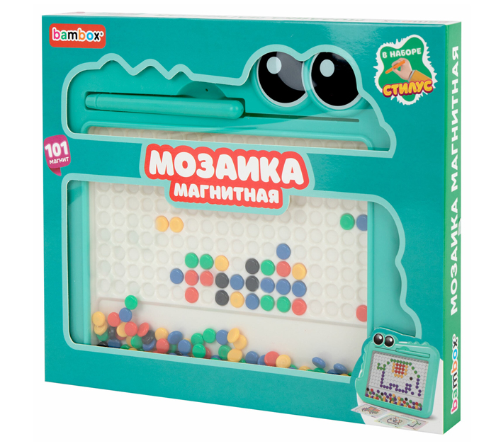 Игра развивающая Мозаика магнитная Bambox «Крокодил», стилус, 101 магнит, 10 карточек, от 3-х лет