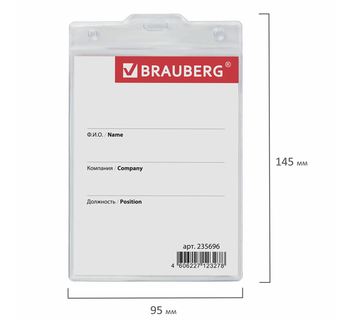 Бейдж Brauberg 120х90мм, вертикальный, без держателя