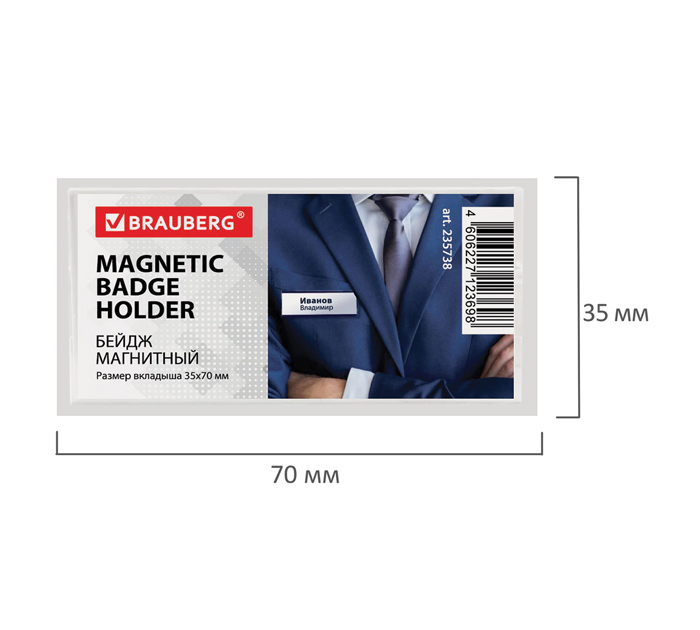 Бейдж Brauberg «Magnetic» 35х70мм, горизонтальный, магнитный