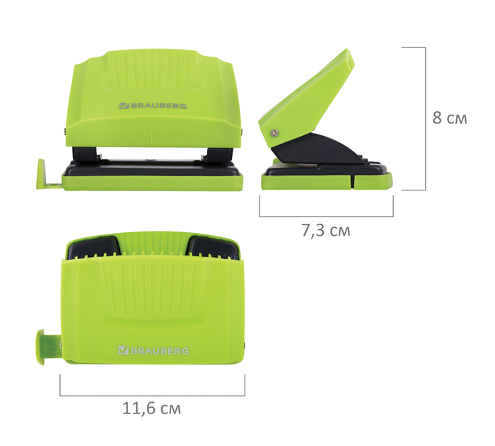 Дырокол Brauberg «Super» на 20л, пластиковый, зелено-черный, с линейкой