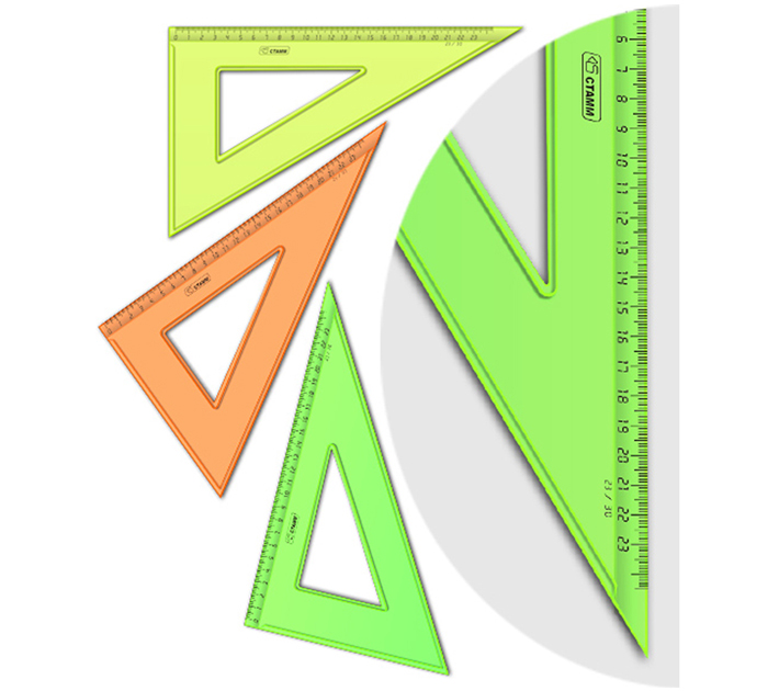 Треугольник СТАММ NEON Cristal – незаменим для чертёжных и измерительных работ. Угол изделия – 30°, длина шкалы – 23 см. Треугольник имеет чёткую напечатанную миллиметровую шкалу и гладкую глянцевую поверхность. Представлен в ярких неоновых цветах ассорти. Страна-производитель - РОССИЯ