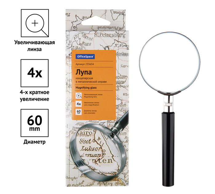 Лупа Office Space 4-х кратное увеличение, d60мм