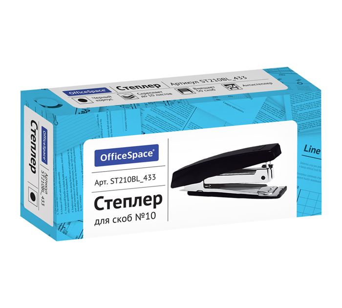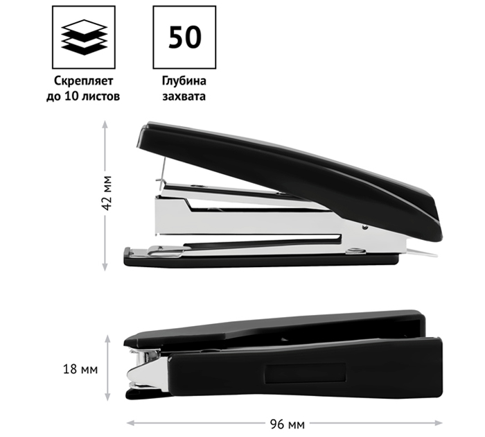 Надёжный степлер имеет встроенный металлический антистеплер и скрепляет до 10 листов. Вмещает до 50 скоб № 10. Механизм скрепления выполнен из прочного металла, а корпус – из высококачественного пластика, что гарантирует долгий срок службы.