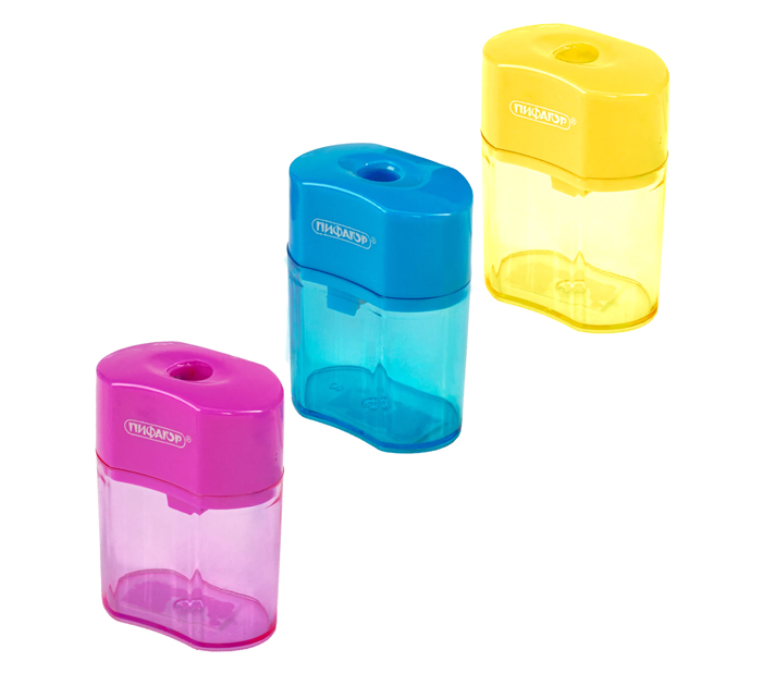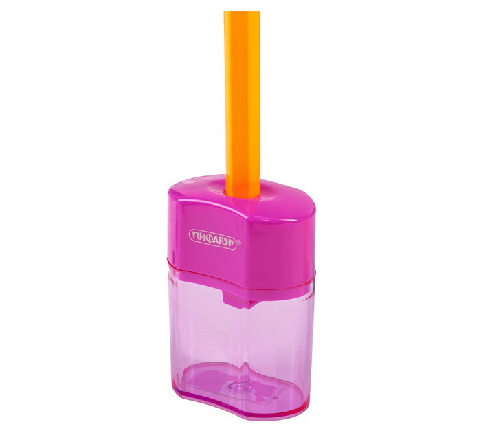 Точилка Пифагор «Ergo» 1 отверстие, с контейнером, ассорти