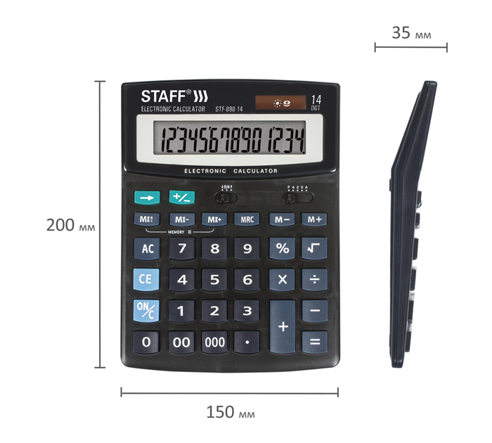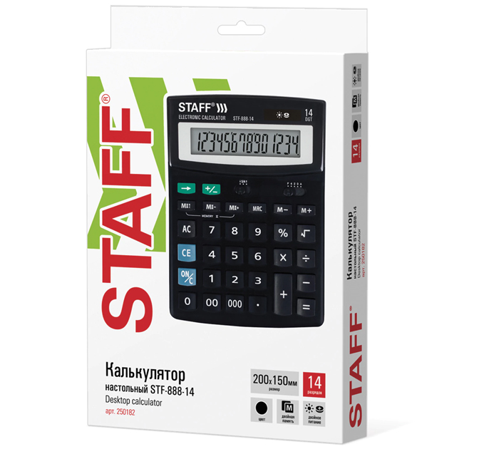 Калькулятор 14 разрядов Staff «STF-888-14» черный, 200х150мм