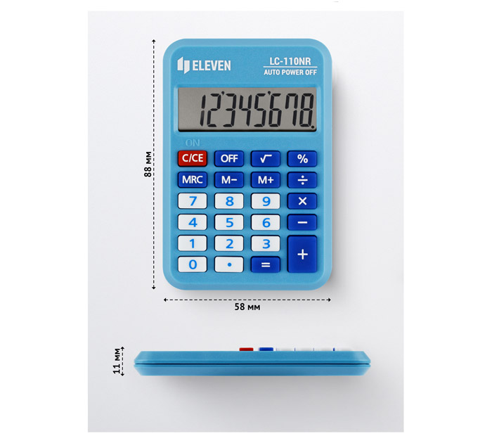 8-ми разрядный карманный калькулятор Citizen LC-110NR-BL предназначен для выполнения арифметических операций. Базовые функции помогут сделать простые расчёты, вычислить квадратный корень и проценты, выполнить операции с памятью. Калькулятор работает только на батарее AG10(LR1130), кнопка выключения позволит сэкономить заряд. Упакован в картонную коробку. Размер калькулятора – 58х88х11 мм, вес – 32 г, цвет – голубой. Гарантия 5 лет. Карманные калькуляторы идеально подойдут взрослым и детям, они компактны и надежны. Страна-производитель - КИТАЙ.