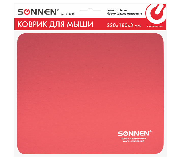 Коврик для мышки Sonnen «Red» 220х180х3мм